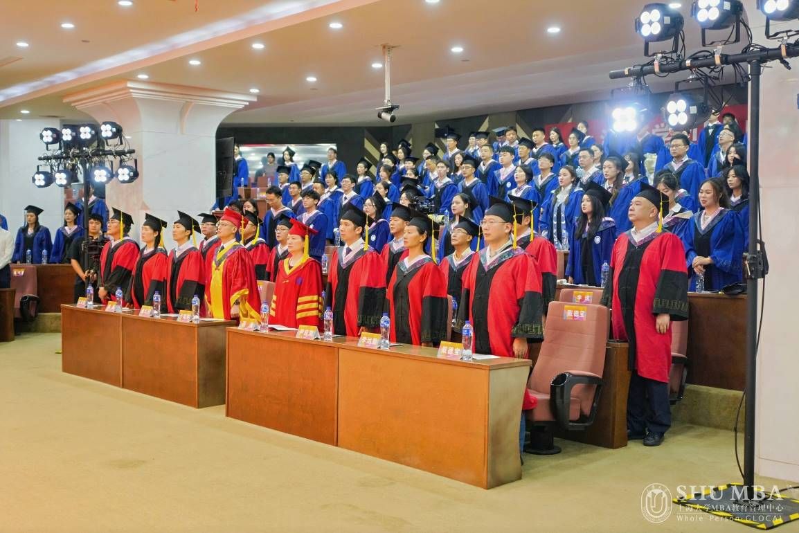 典礼在庄严的国歌声中拉开帷幕。全体人员肃立齐唱国歌,展现了上大MBA学子深厚的家国情怀与肩负时代使命的坚定信念。