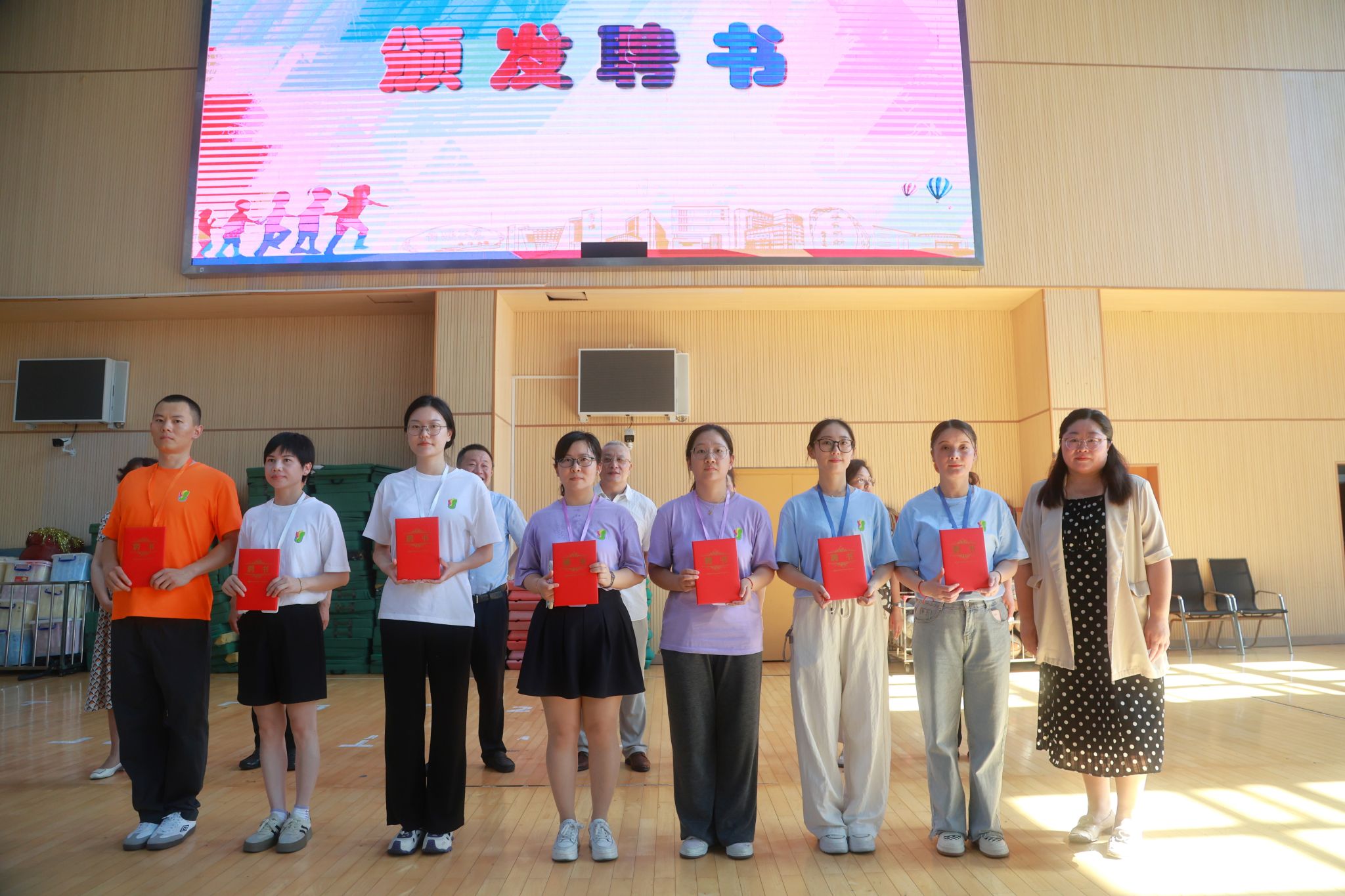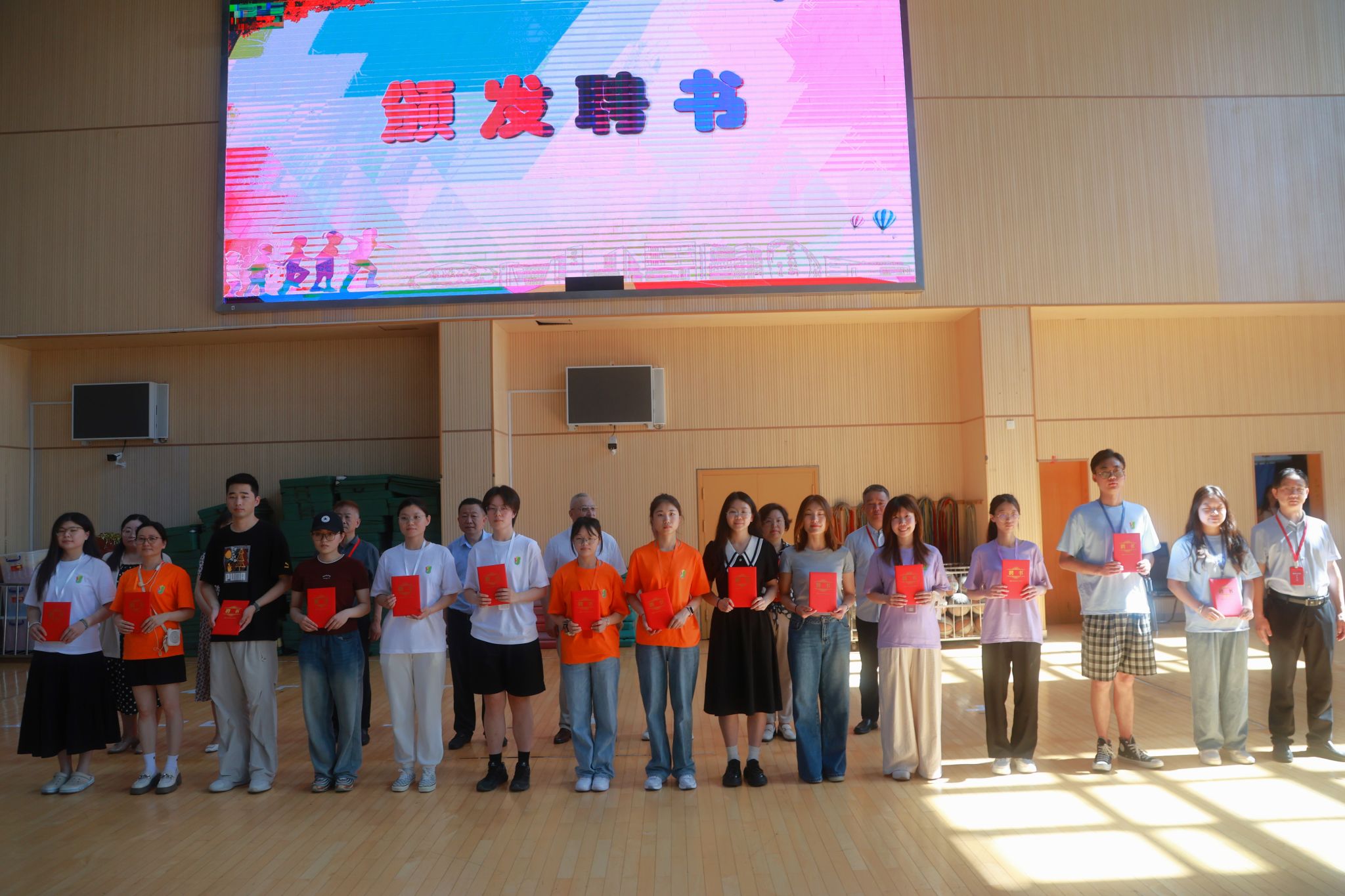 党委宣传部副部长、融媒体中心主任卢吉超为班主任代表颁发聘书,妇委会常务副主任吴国琴为任课教师代表颁证,基础教育处副处长肖青峰为研究生志愿者代表和助教代表颁证。本届师资团队阵容强大,由上海大学专业教师、附属学校经验丰富的班主任团队、各学院优秀研究生志愿者及助教共同组成,全力保障活动安全与教育质量。