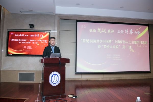上海大学教授、市中共党史学会渔阳里研究专委会主任李瑊作题为《丹心报国:海外华侨与上海抗战》的主题报告。作为历史学博士,李教授通过详实的史料和深入的分析,系统回顾了海外华侨在上海抗战中的英勇事迹和重大贡献,生动展现了侨界先辈心系祖国、共赴国难的赤子情怀,引发与会嘉宾的强烈共鸣。