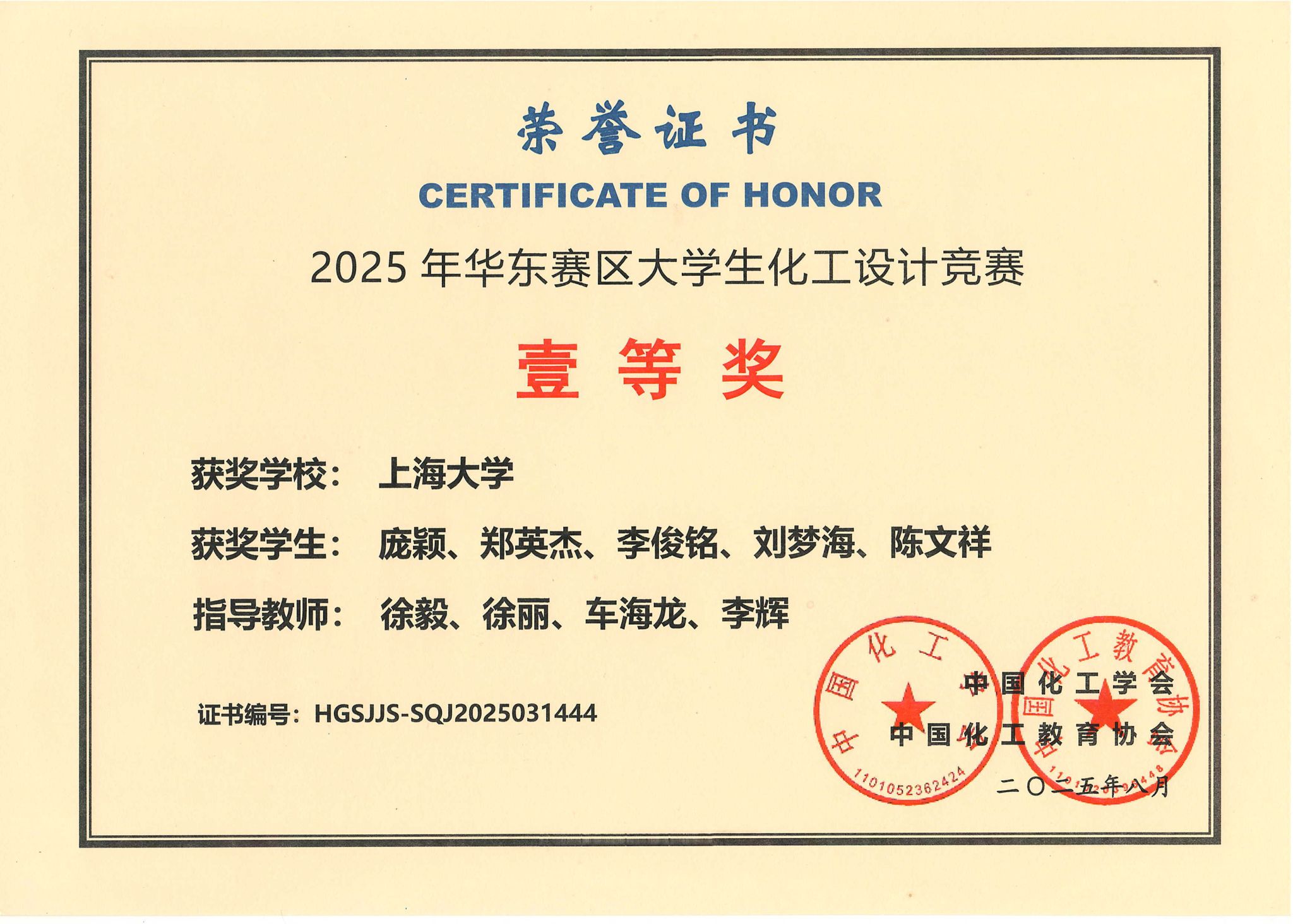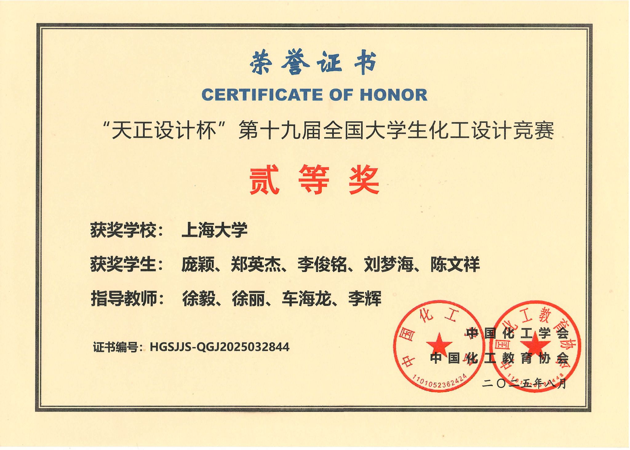近日,“天正设计杯”第十九届全国大学生化工设计竞赛总决赛落下帷幕。本次竞赛吸引了全国479所高校的4337支团队报名,参赛人数首次超2万人,参赛学校和报名队伍的数量再创新高。由环化学院化学工程与工艺专业本科生庞颖、郑英杰、李俊铭、刘梦海、陈文祥五位同学组成的“钴锂全开”团队,凭借出色表现荣获全国贰等奖。此前,该团队在上海赛区和华东赛区连续斩获壹等奖。