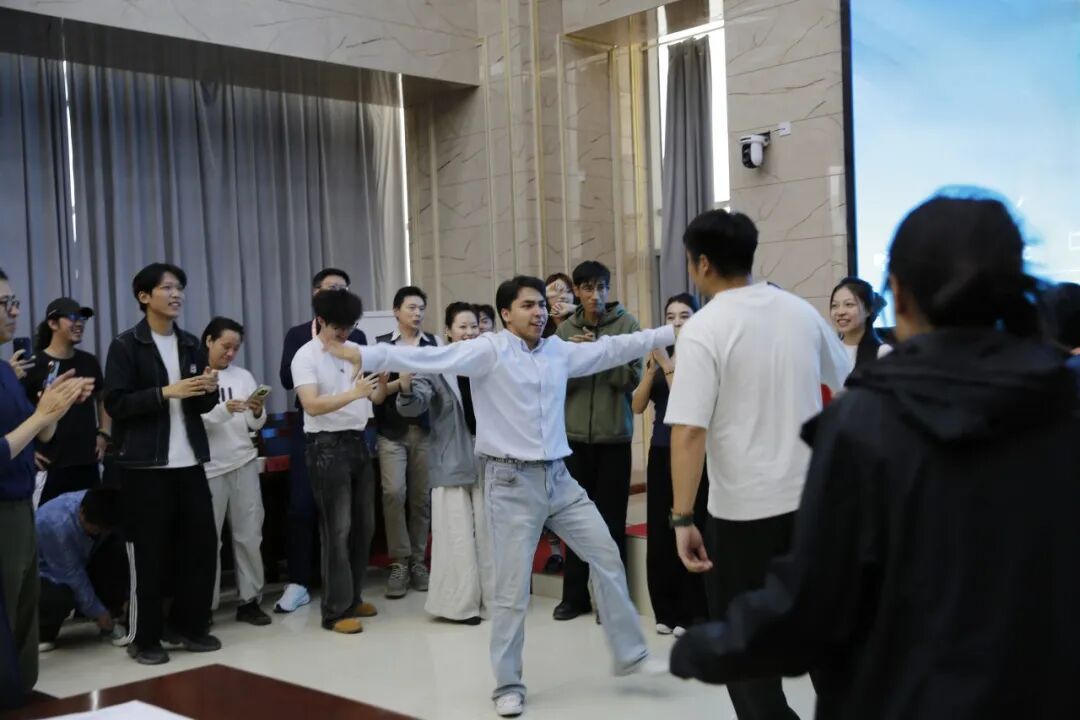 会议结束后,来自喀什大学的维吾尔族同学们为到场嘉宾献上了新疆民族特色的艾德莱斯巾,并表演了维吾尔族舞蹈。