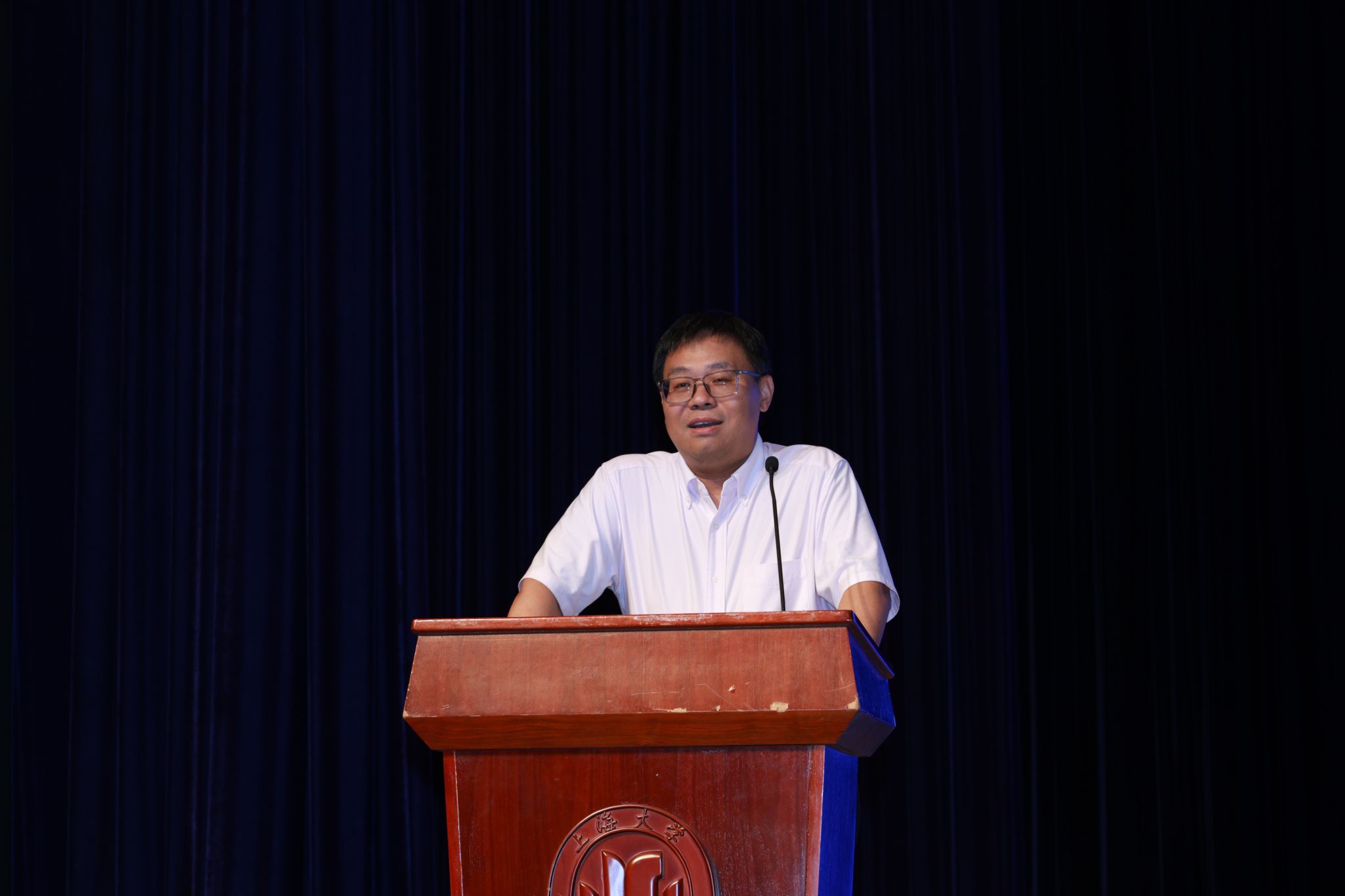 在师长寄语之后,两位新生代表先后上台发言,展现计算机学院新生的朝气与理想。2025级本科生代表王晨旭分享了他初入大学的感受以及对未来四年“代码人生”的期待。2025级研究生代表龚辰结合遵义支教经历分享感悟,呼吁大家把握数字浪潮、对接国家需求。两位代表的发言真挚有力,赢得了现场阵阵掌声。