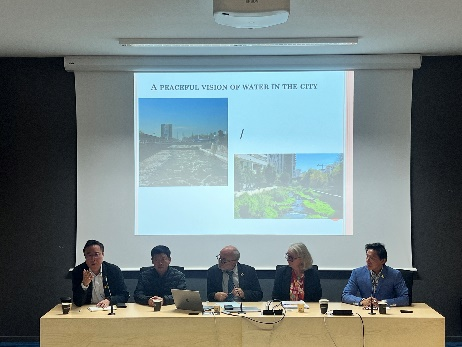 今年正值中法项目获批十周年,毕业典礼系列活动中,同学们参访了里昂三大学生创新创业中心并听取法国对学生创业的支持政策,参加了由里昂三大哲学院组织的《特大城市生态转型挑战:水资源》学术论坛。论坛由里昂三大副校长Amelie Bohas主持,特邀里昂生物多样性、水资源与城市研究联合会总监Herve Piegay和中法项目毕业生陈江做主题演讲,双方通过罗纳河治理与苏州河治理案例阐述了各自治理理念、治理方法以及城市河流与沿岸城市生活的关系,让师生对各自城市与城市中重要河流水资源的关系有了深切的认识。圆桌论坛中,中法双方老师孟添博士、马君博士、Philippe Billet博士与Elisabeth Sibeud博士在海绵城市、水资源与生物多样性的法律研究、水资源与绿色金融等方面进行了热烈的讨论,现场师生互动问答热烈。