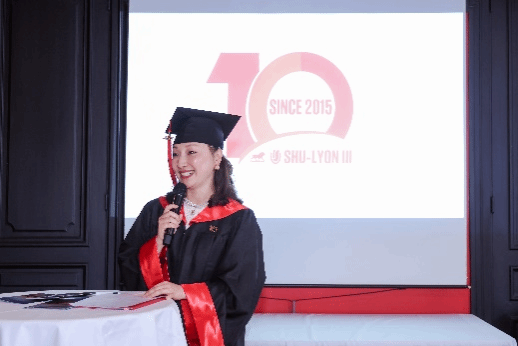 近日,上海大学-法国让穆兰里昂第三大学可持续发展专业硕士项目第七、八期毕业典礼在法国里昂第三大学举行。中国驻里昂总领事馆于江总领事、王昂领事,里昂三大副校长Manuel Jobert、哲学院院长Mikaël Cozic、国际部海外项目负责人Valerie Tempele、亚洲地区事务负责人Lucien YANG,新中法大学代表Guillaume Arnould、邹欢欢,中法项目法方主任Claire Harpet、中方主任孟添、中方项目组代表邢洁婷、邵一倩,中法教师代表Phillippe Billet、Jacopo Bodini、William Houx-Plantier、马君、袁浩、王永等及中法项目七、八期部分学员及家属、里昂三大法国学员代表等出席典礼,共同见证这一重要时刻。活动由中法项目法方主任Claire主持。