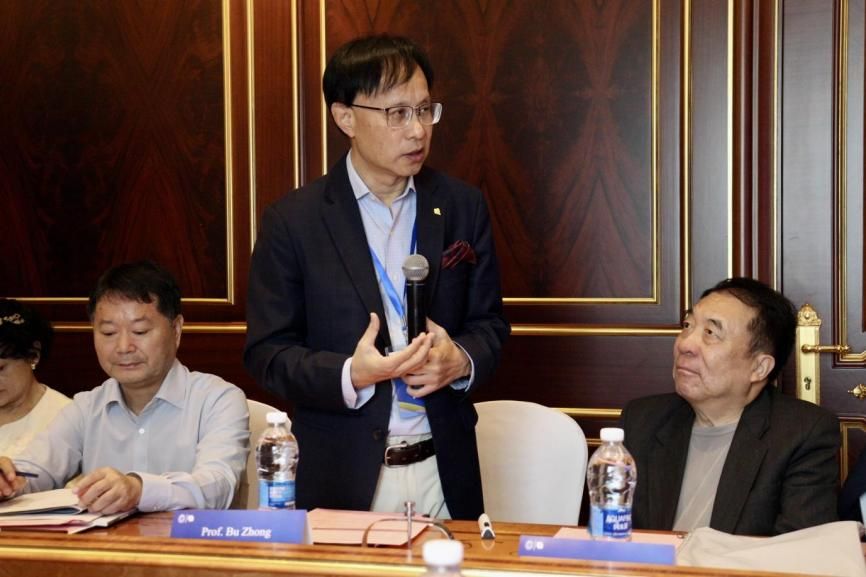 纽约州立大学布法罗分校的洪浚浩教授介绍了该校新近推出的 “AI+X” 学位项目,并特别赞赏上海大学在推动国际新闻传播教育方面的前瞻性贡献,期待未来能开展更多合作与交流。在谈及未来联盟的 AI 教育发展时,他建议可鼓励成员院校学生共同参与由联盟主办的各类 AI 应用活动,从而进一步促进跨校合作与实践交流。