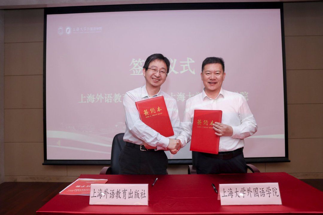 上海外语教育出版社社长助理高云松与外国语学院院长尚新共同签署了合作框架协议。高云松先生表示,上海外语教育出版社将与上海大学外国语学院紧密合作,围绕“百年上海中外文明交流互鉴”主题,汇聚各方特色优势,全力打造涵盖学术出版与国际传播的精品项目,助力中外文明互鉴研究。