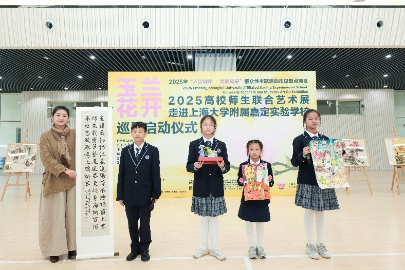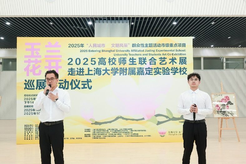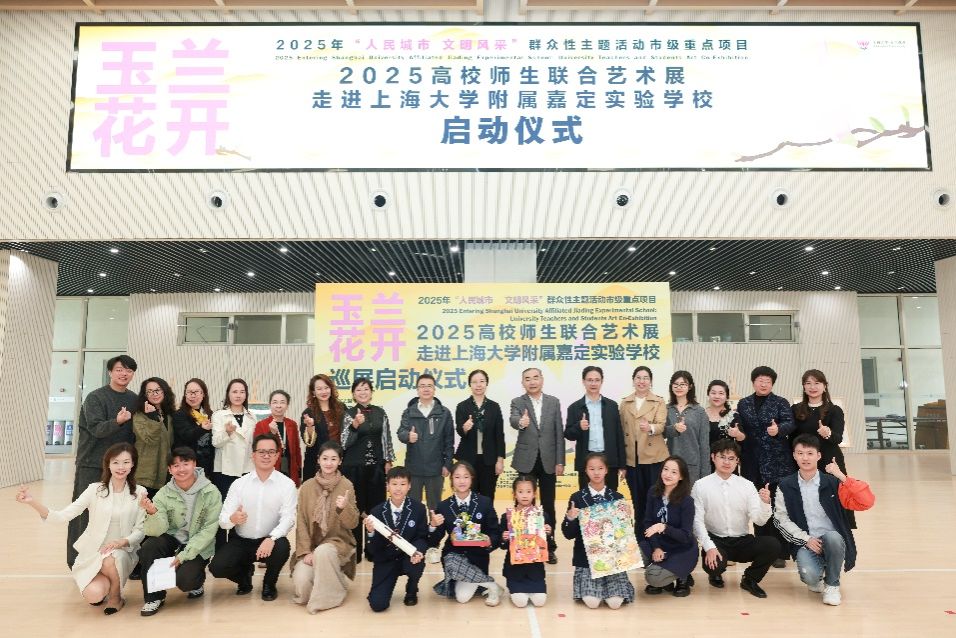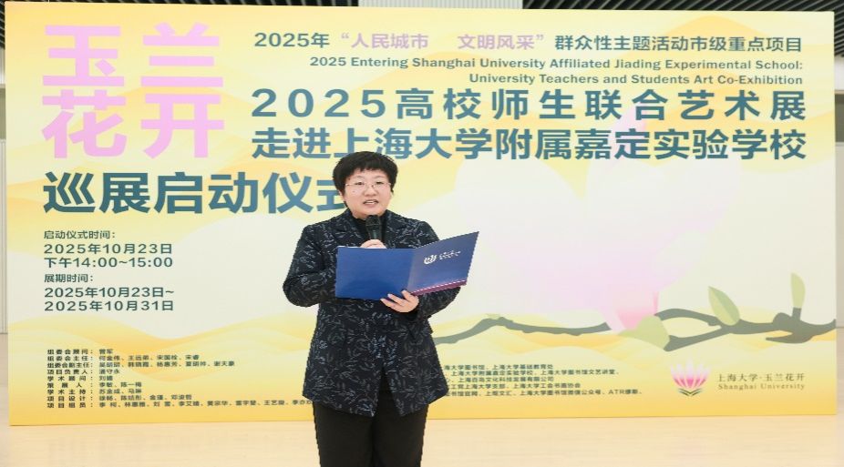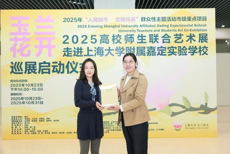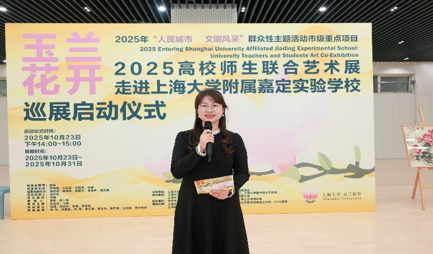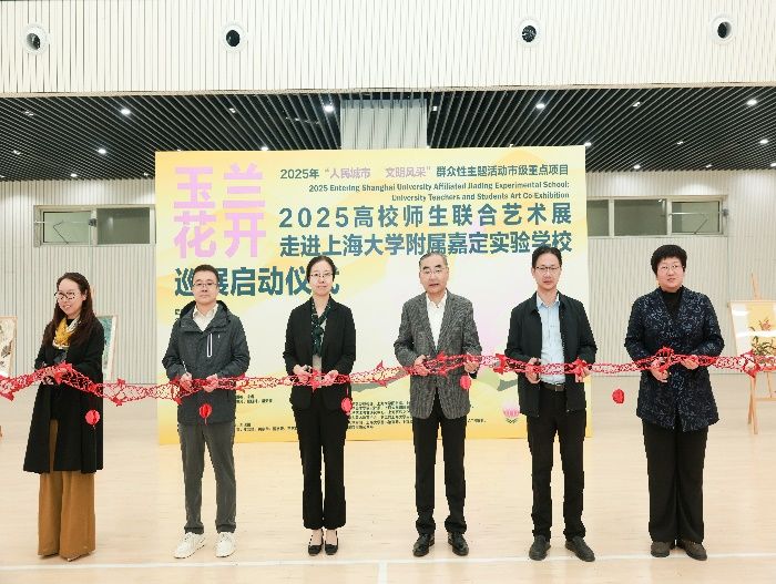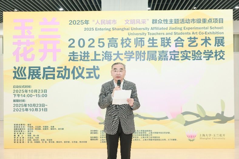 秋意渐浓,玉兰留香。10月23日,在这个承载着特殊历史记忆的日子里,一场融合艺术观赏与美育浸润的盛会拉开帷幕,“玉兰花开——2025年上海大学·城市文化品牌活动高校师生联合艺术展”走进上海大学附属嘉定实验学校启动仪式隆重举行。上海大学党委宣传部、图书馆、基础教育处、上海美术学院、嘉定工业区管委会等部门领导嘉宾齐聚现场,与学校师生代表共同见证这一艺术盛会,这不仅是一次美育贯穿大中小学的创新实践,更是一次大学与附校“手牵手”的有益探索。