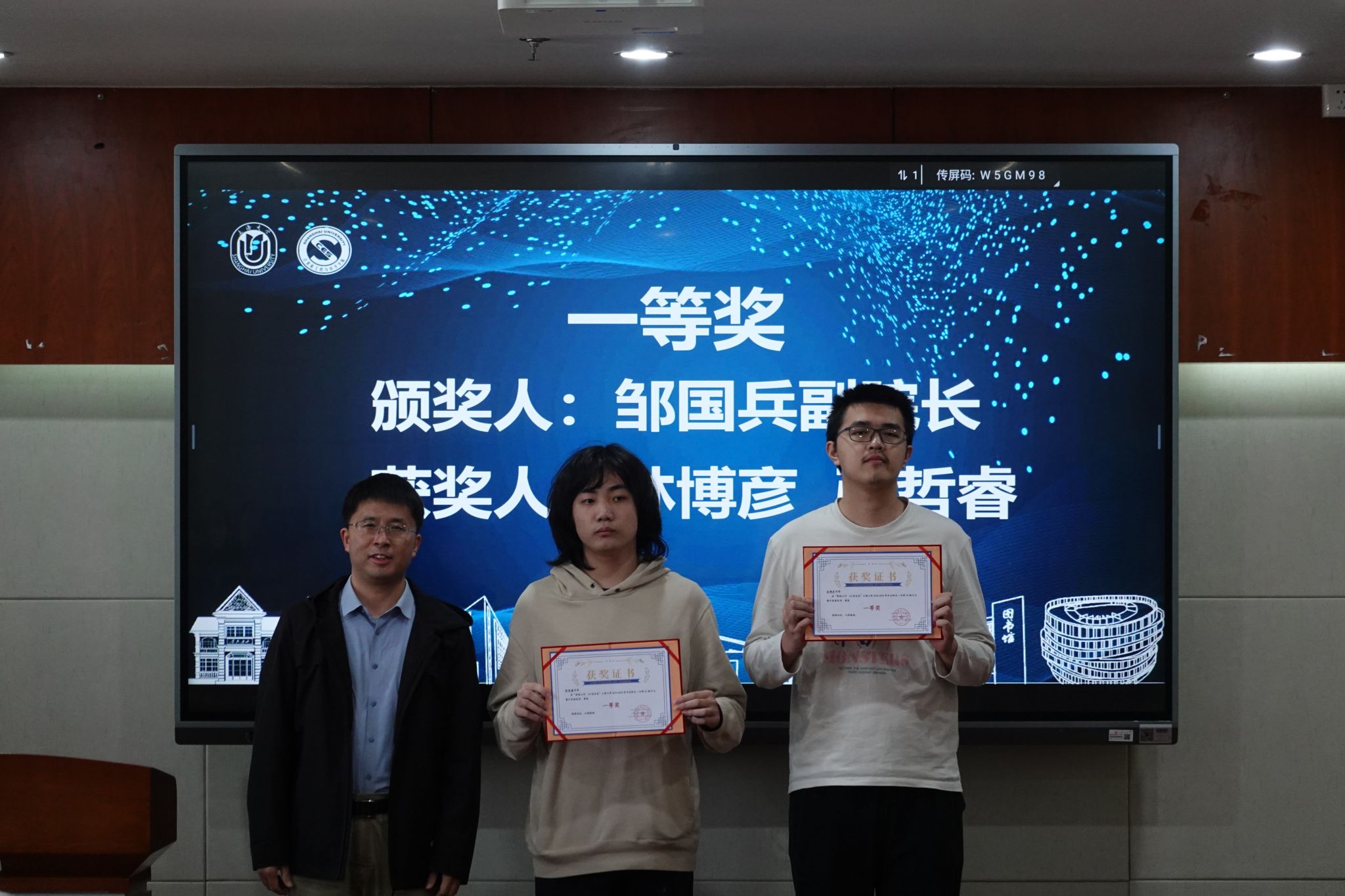 在随后的上海大学网络文化节颁奖环节中,上海大学心理辅导中心主任许静为特等奖获得者颁奖,学院副院长邹国兵、李晓强分别颁发一等奖和二等奖,表彰在校园网络文化建设中表现突出的同学。与会人员共同观看了获奖作品《隐形防线——科技赋能的国家安全教育课》。