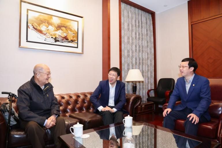 活动开始前,校党委书记吴坚勇、副书记段勇与邓伟志教授亲切交谈。