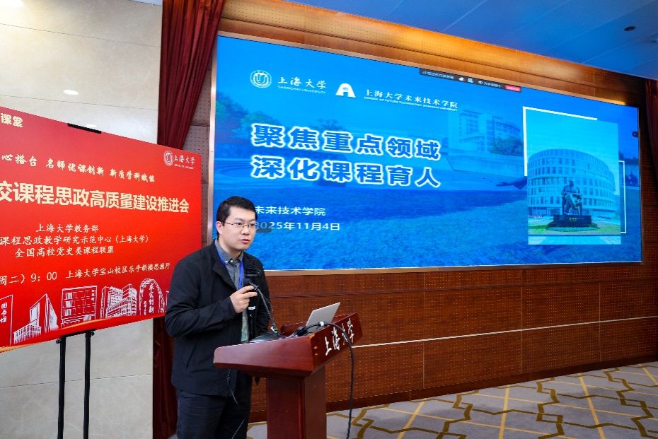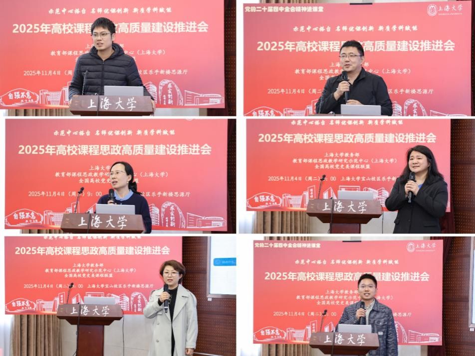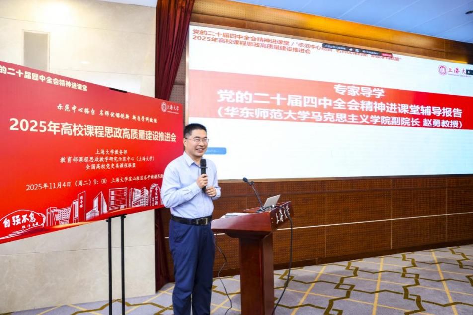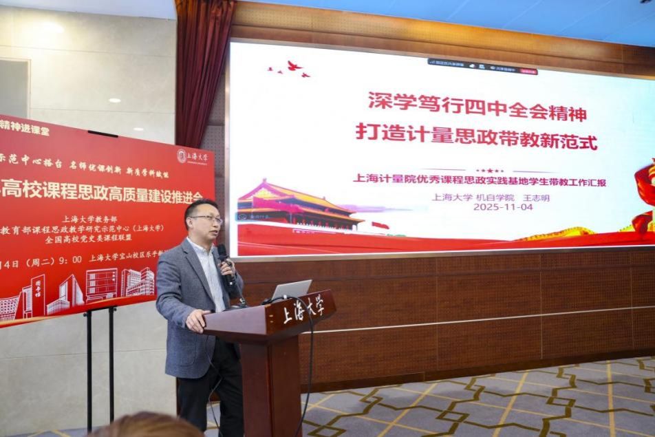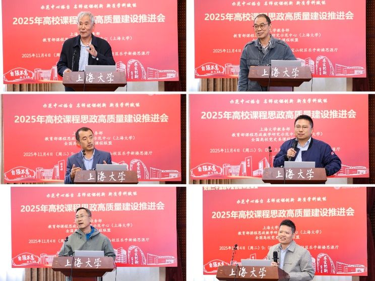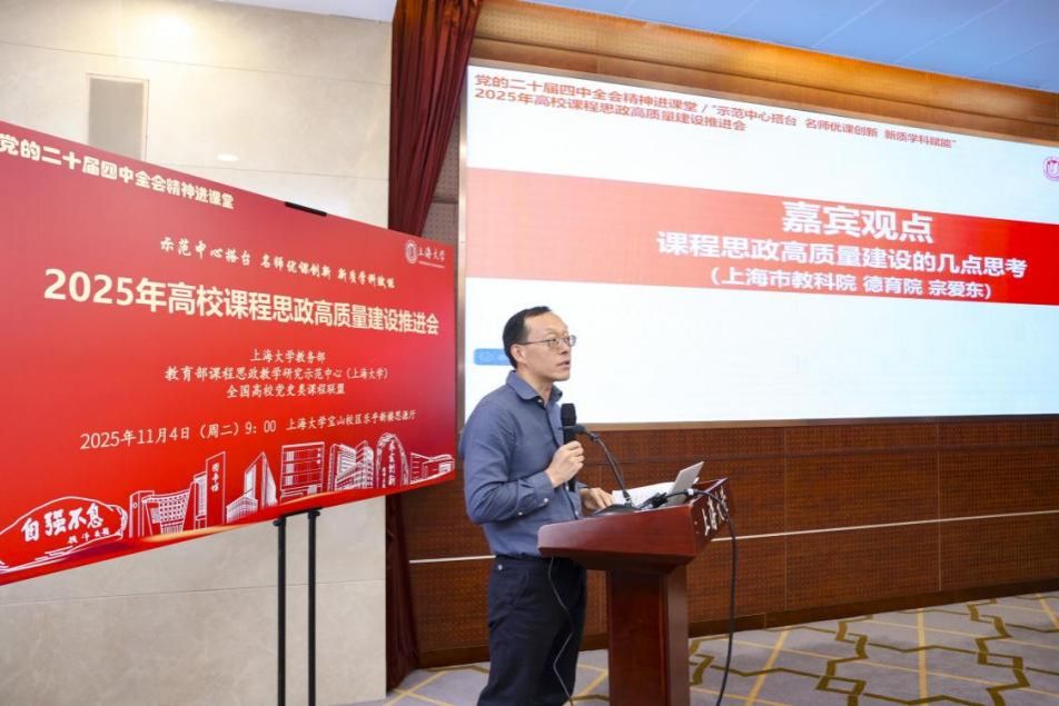 近日,高校课程思政高质量建设推进会在上海大学宝山校区举办。会议主题为“示范中心搭台、名师优课创新、新质学科赋能,推动党的二十届四中全会精神进课堂”。会议由上海大学教务部、教育部课程思政教学研究示范中心(上海大学)主办。教育部课程思政教学研究示范中心(华东师范大学、同济大学)代表,全国高校党史类课程联盟校教师(嘉兴大学、铜仁学院)、上海高校课程思政教学研究示范中心代表(上海师范大学、立信会计金融学院、上海对外经贸大学和上海杉达学院教务处领导),学校部处代表,学院课程思政教学研究中心负责人,课程思政名师工作室主持人及团队,课程思政教改项目、课程思政示范课程、党史学习教育与课程相融合示范课程负责人等近90人与会,共谋发展新篇。上海大学副校长于雪梅,上海市教科院德育院党支部书记宗爱东,教育部课程思政教学名师、上海中医药大学张黎声和华东师范大学周立旻,华东师范大学赵勇教授,复旦大学杨宏雨教授,同济大学周征宇、黄世泽副教授和上海大学附属中学王海燕老师等与会。教务部副部长、教育部课程思政教学研究示范中心(上海大学)负责人顾晓英主持会议。