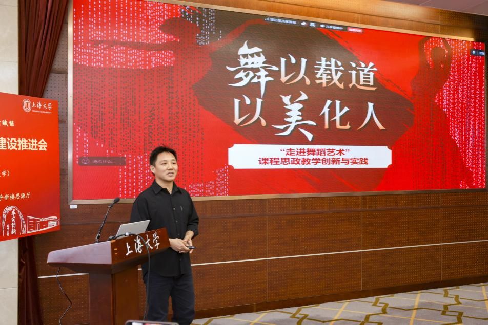 上海大学音乐学院还国志老师分享了他今年参加全国高校教学创新赛(课程思政组)决赛三等奖和市赛特等奖的宝贵经历。还老师表示,党的二十届四中全会为繁荣发展社会主义文化、激发全民族文化创新创造活力指明了方向,也为高校美育教育提供了指导。舞蹈是坚定文化自信、实现“以美化人”的重要载体。他深入解读《永不消逝的电波》等作品,通过肢体语言表演将伟大建党精神无痕融入课堂教学,让学生理解舞蹈背后的文化与时代精神。还老师始终秉持“艺术为人民服务”理念,带领学生走向国际舞台、深入社区,让美育浸润心灵,以实际行动践行“人民至上”。