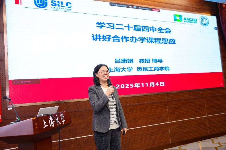 获得上海市第二届课程思政教学设计展示活动特等奖的两位教授依次进行教学展示和经验分享。悉尼工商学院党委书记吕康娟动情地介绍了获奖课程“管理与组织”的建设历程。该课程是学院首门引进的境外课程,有20年教学实践,已实现了从全盘引进到本土化创新的跨越。在教学过程中,她率领团队深度融合中国企业管理实践,通过真实案例解析组织行为与领导力,引导学生理解中国经济发展脉络,实现了“国际化标准”与“本土化实践”的有机统一。