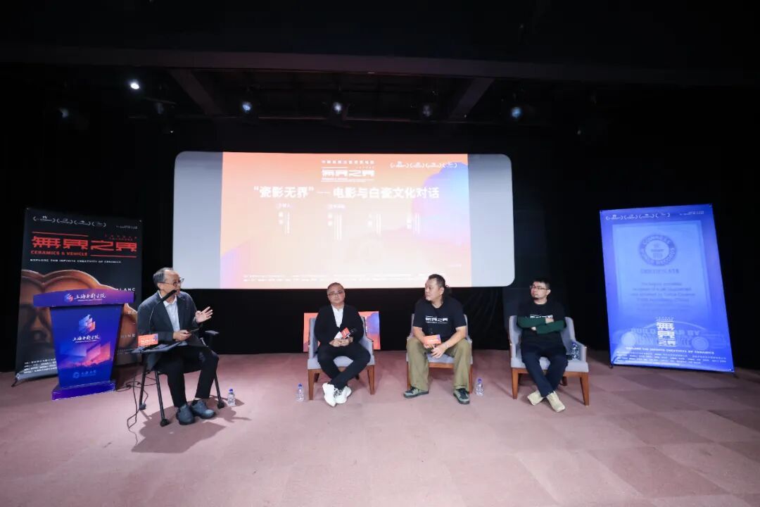 观影结束后,上海大学新闻传播学院蒋安老师主持对话环节,与程波副院长、王洪导演、庄晓阳大师围绕影片核心议题展开深入交流。程波副院长从电影领域专业视角,剖析了影片在电影语言创新与传统文化表达融合层面的独到思考,为在场师生提供了专业视角的解读框架;王洪导演则揭秘了创作初衷,并袒露了创作全程的心路历程与艺术坚守,坦言期望以影像为纽带串联历史文脉与现代语境,助力非物质文化遗产的当代传播与创新转化;庄晓阳大师聚焦技术难点,详解了从纯艺术白瓷塑形到实现工业精度汽车造型的挑战。