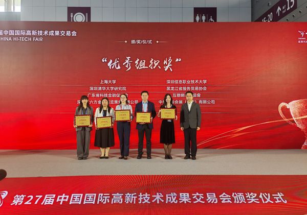 此外,上海大学作为参展单位获得本届高交会“优秀组织奖”及“优秀展示奖”,参展多个项目备受关注与好评,经组委会评审,上海大学推荐的无创脑机接口康复医疗设备、自主装卸机器人iLoabot-M、全球首款数字驱动硅基OLED微显示AR眼镜、“AI(爱)沪助”智慧适老专属模型及平台、“格物”具身智能仿真平台、玲珑知心AI、3D打印ASG、刹车盘用耐温防腐涂料、超薄固态电解质膜、化工新和新材料的AI挖掘增效平台等科研成果和单位斩获“优秀科研成果创新奖”和“优秀科技创新企业奖”12项。