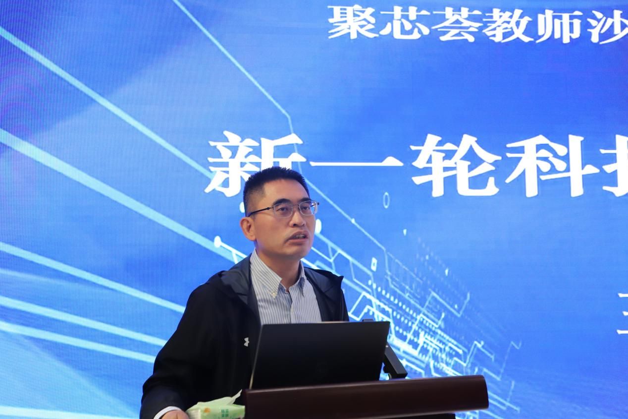 接着,上海大学马克思主义学院副教授王金伟作主题为“新一轮科技革命的趋势与影响”的专题辅导报告。王金伟教授从全球科技发展大势出发,深入剖析了新一轮科技革命的核心驱动力、主要特征及深远影响,特别是对微电子领域带来的机遇与挑战。他结合党的二十届四中全会关于“十五五”时期实施科教兴国战略、人才强国战略、创新驱动发展战略的部署,阐述了高校特别是微电子学院在抢占科技制高点、实现高水平科技自立自强中的使命担当。报告内容视野开阔、分析透彻,引发了与会师生的深入思考和热烈讨论。