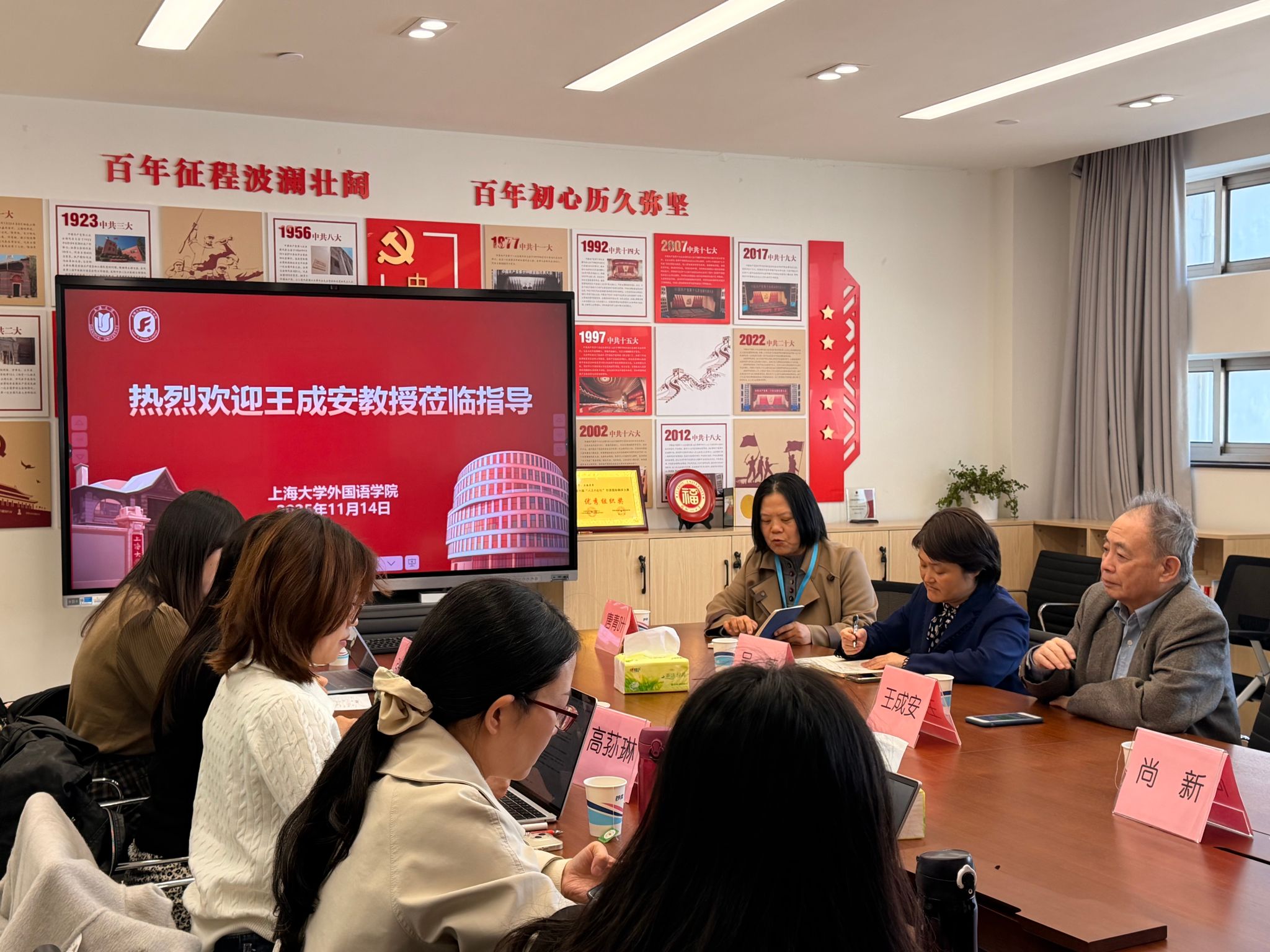 11月14日,上海大学外国语学院特邀中国-葡语国家经贸合作论坛(澳门)前秘书长、对外经济贸易大学中国葡语国家研究中心特聘专家王成安教授莅临学院交流指导,并做题为《充分认识葡语国家在全球中的地位和作用——持续研究与交流》的专题讲座。外国语学院党委书记吴蔚党委副书记、院长尚新,副院长唐青叶,葡萄牙语教师张梦瑶、高荪琳、倪珮玥等教师代表和本硕博学生参加讲座,共同探讨葡语国家在全球格局中的重要地位与未来研究方向。讲座由上海大学葡语国家区域研究中心主任、外国语学院副院长唐青叶教授主持。