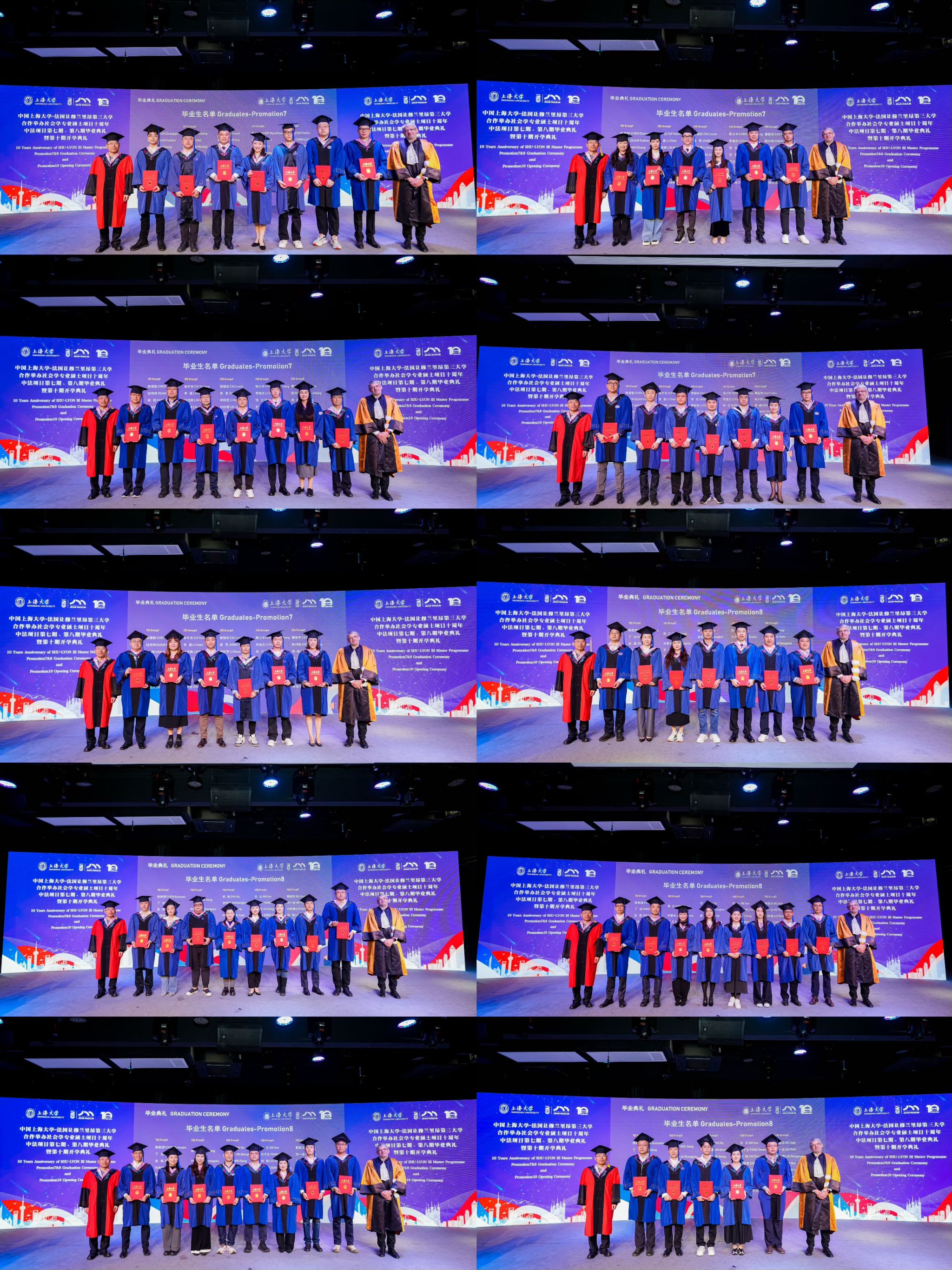 随后举办授证与毕业拨穗仪式。上海大学上海经济管理中心主任朱明原为毕业生颁发毕业证明,里昂三大哲学院院长Mikaël COZIC为毕业生拨穗。中法项目联合主任Claire HARPET和孟添分别为优秀毕业生和优秀毕业论文获得者颁发荣誉证书。