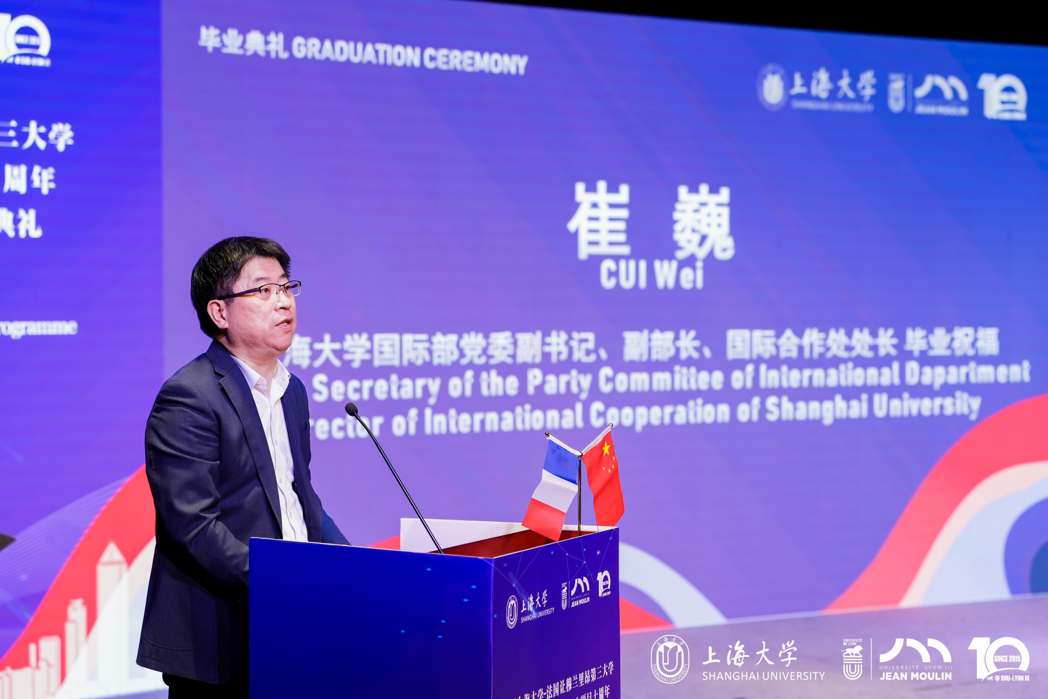 上海大学国际部党委副书记、副部长、国际合作处处长崔巍,里昂三大校长Gilles BONNET先后致辞,充分肯定项目在培养可持续发展领域国际化人才方面的卓越贡献,并高度赞扬其为中法人文交流搭建的坚实桥梁。