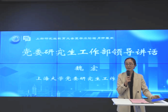 上海大学党委研究生工作部部长魏宏强调,研究生教育作为国家培养高层次拔尖创新人才的主要途径,是推动科技创新与文化繁荣的重要支撑。她表示,学校始终将研究生教育摆在办学治校的突出位置,持续深化培养模式改革。魏宏部长特别肯定了新闻传播学院作为“双共建”单位取得的办学成果。她指出,学院积极构建了特色鲜明的研究生培养体系,在培养兼具家国情怀、国际视野和专业素养的新闻传播人才方面成效显著。