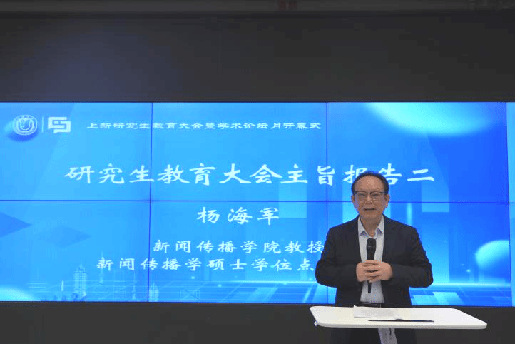 上海大学新闻传播学院新闻传播学硕士学位点负责人杨海军教授强调,学术理想是研究生阶段的指引,鼓励学生在创新中为人类知识体系贡献力量。他提出,学子应继承学院“三个专注”传统,立足现实问题,夯实理论基础,同时积极拥抱人工智能等新技术,提升竞争力。在专业定位方面,他系统阐释了方向选择、导师选择与论文选题的三次关键定位,指出其对学生学术生涯的深远影响。关于职业规划,他结合人工智能分析提出“学术与实践双轨并行”等建议,强调研究工具掌握、跨界能力培养与人脉构建的重要性,为学子提供了兼具前瞻性与实践性的发展路径。