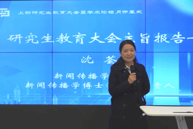 上海大学新闻传播学院新闻传播学博士学位点负责人沈荟教授,从学术生态建设的角度发表演讲。她指出,学术价值不仅体现在研究成果中,更蕴含于日常的学术交流与思想碰撞。通过分析学位论文质量管理的具体案例,她强调严格的学术标准是对学生长远发展的根本保障,高要求有利于学生的学术生涯与职业生涯的稳步成长。她呼吁学子秉持专注精神,心无旁骛地投入学术研究,在纯粹的知识追求中实现个人成长与社会价值。