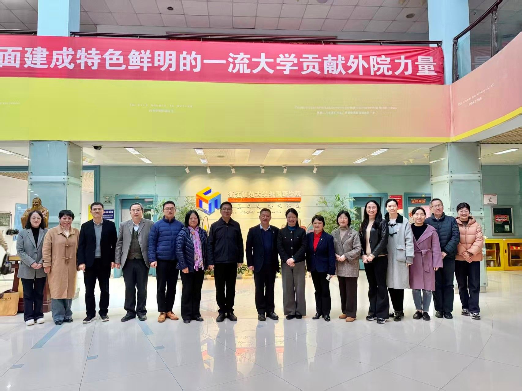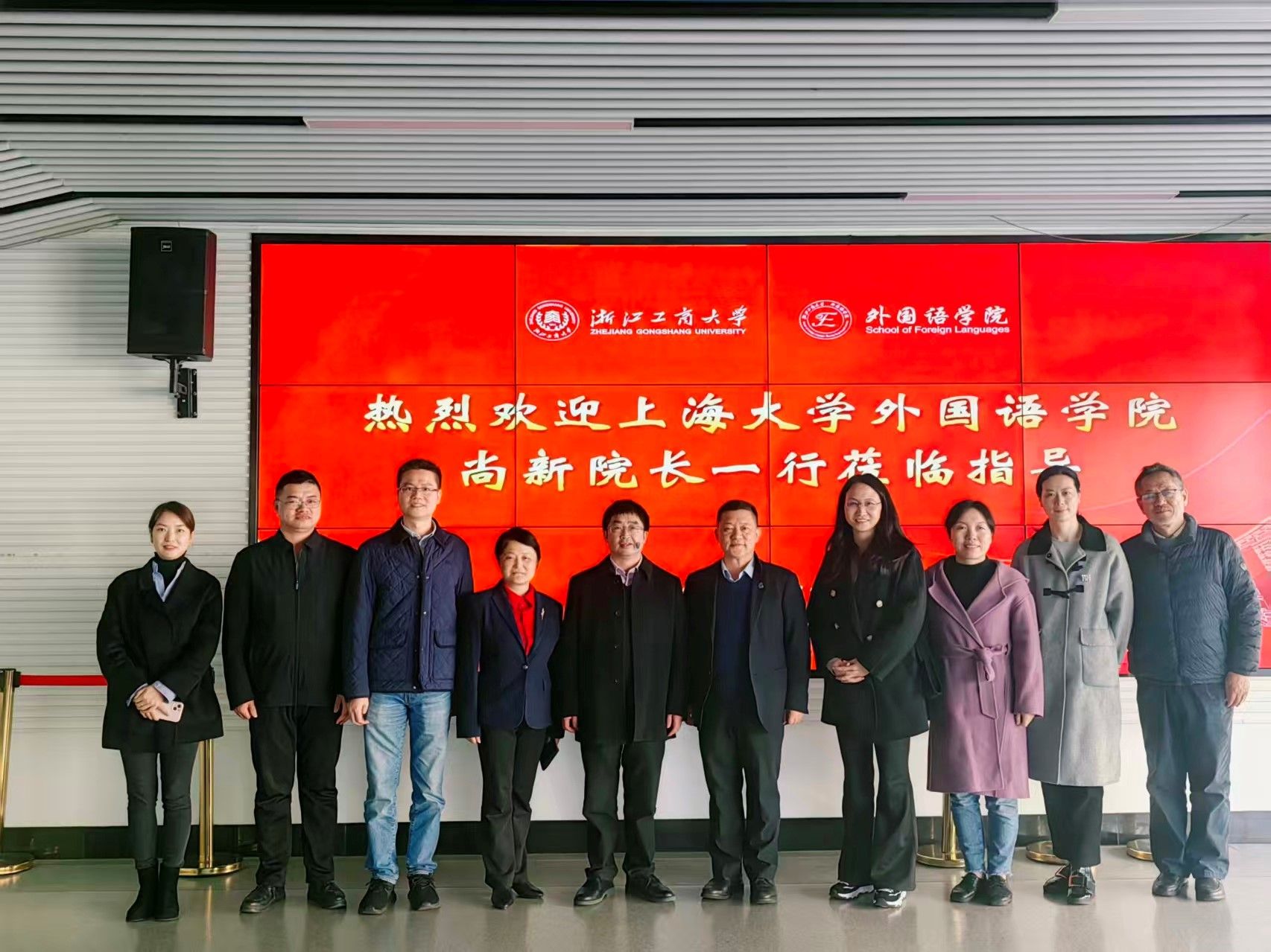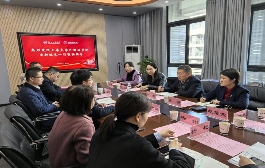 为加快推进外国语言文学一级学科博士点建设,促进学科高质量发展,11月20日至21日,上海大学外国语学院党委副书记、院长尚新,党委书记吴蔚率代表团,赴浙江师范大学、浙江工商大学开展专题调研。代表团成员包括党委副书记、副院长贾小琴,副院长唐青叶,英语系主任马拯,日语系主任赵莹波,法语系主任王文新和学院办公室主任郑醒芝。