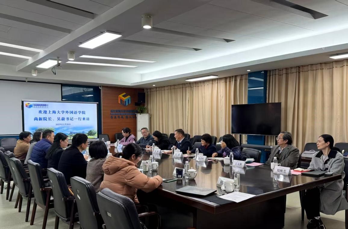 尚新院长表示,两院在学科建设上面临着相似机遇与挑战,作为新近获批的外国语言文学博士点学科,浙师大的相关做法和思路具有重要参考价值,期待以此次交流为契机,共同探索外语学科发展的新路径。吴蔚书记对浙江师范大学外国语学院的热情接待表示感谢,并表示,此次调研是学院学习先进经验、推动自身发展的重要举措。