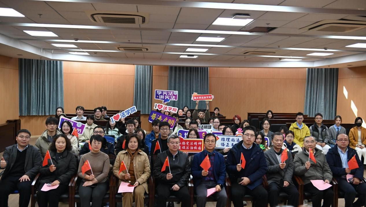 为深入学习贯彻习近平法治思想与党的二十大、二十届四中全会精神,扎实落实习近平总书记关于加强法治宣传教育的重要指示要求,持续提升全校师生的法治意识与道德素养,凝聚法治校园建设共识,为学校“双一流”建设注入新活力,2025年12月4日——第12个国家宪法日当天,由法学院(秋白书院)、校党政办、党委宣传部、学生工作办公室、党委研究生工作部、校团委、校工会等联合主办的上海大学第七届法治文化节开幕式,在宝山校区法学院113模拟法庭举行。本届文化节紧扣宪法主题,以“尊崇宪法守初心,弘扬法治润校园”为核心,将陆续推出宪法日普法活动、求职就业法律宣讲、“法言杯”辩论赛、模拟法庭观摩、反诈骗宣讲等系列特色活动。