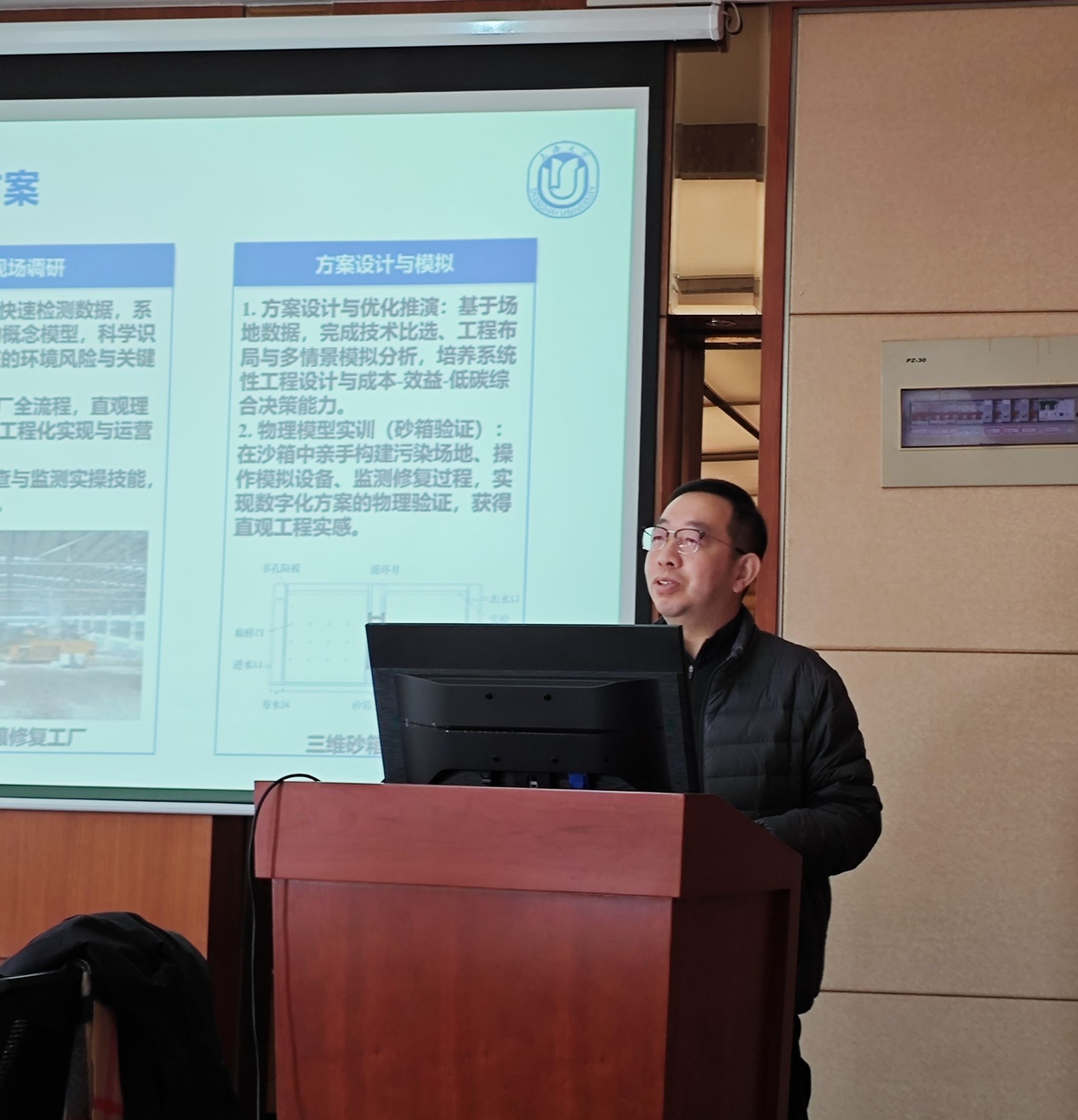 会议伊始,里斯本学院副院长、环境系主任刘强从“需求分析、目标定位、综合改革、保障机制”四个方面,系统介绍了上海大学环境保护人才培养综合改革方案。该方案紧扣产业绿色化、数字化与融合化转型对复合型人才的需求,旨在通过知识体系重构、实践能力强化与培养环节贯通,搭建校企协同育人的总体框架。