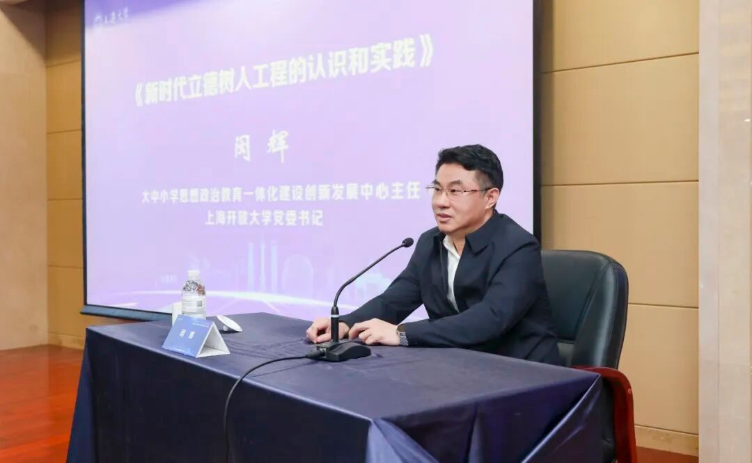 大中小学思想政治教育一体化建设创新发展中心主任、上海开放大学党委书记闵辉以《新时代立德树人工程的认识和实践》为题作主旨报告,深入解读新时代立德树人工程的核心要义与改革路径,并就如何构建协同贯通的育人机制、推动思政教育创新发展分享了系统思考与实践建议:一是实施新时代立德树人工程,要认识到新时代立德树人工程是教育强国建设的核心任务,从新使命、新格局、新技术、新需求四个方面理解和推进。二是推进大中小学思政教育一体化,要理解大中小学思政教育一体化是国家战略部署,全面认识其科学内涵,从六个维度健全教育矩阵。三是开展立德树人机制综合改革试点,遵循“边试点、边研制、边总结”模式,通过实践反馈不断优化制度设计,实现动态完善与同步推进。