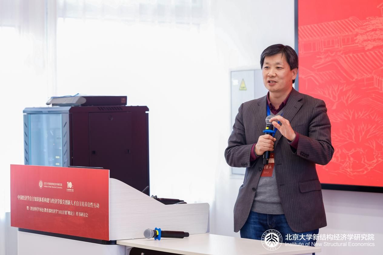 在《新结构环境经济学》教材教学研讨会上,上海大学经济学院教授聂永有回顾了研究院自2018年萌发构想、2019年正式挂牌至今六年发展历程,并对北京大学新结构经济学研究院及全国同行的长期支持表示感谢。聂永有结合自身多年教学研究经验指出,传统环境经济学基于新古典经济学范式,在解释结构性、阶段性的环境问题方面存在局限;新结构经济学以要素禀赋结构为起点,为环境经济学提供了更贴近现实的分析视角,有助于培养学生务实的学术直觉。他认为该学科仍处于发展之中,教材的核心价值在于激发讨论、回应现实并指引未来,期待共同推动这一领域的完善与丰富。