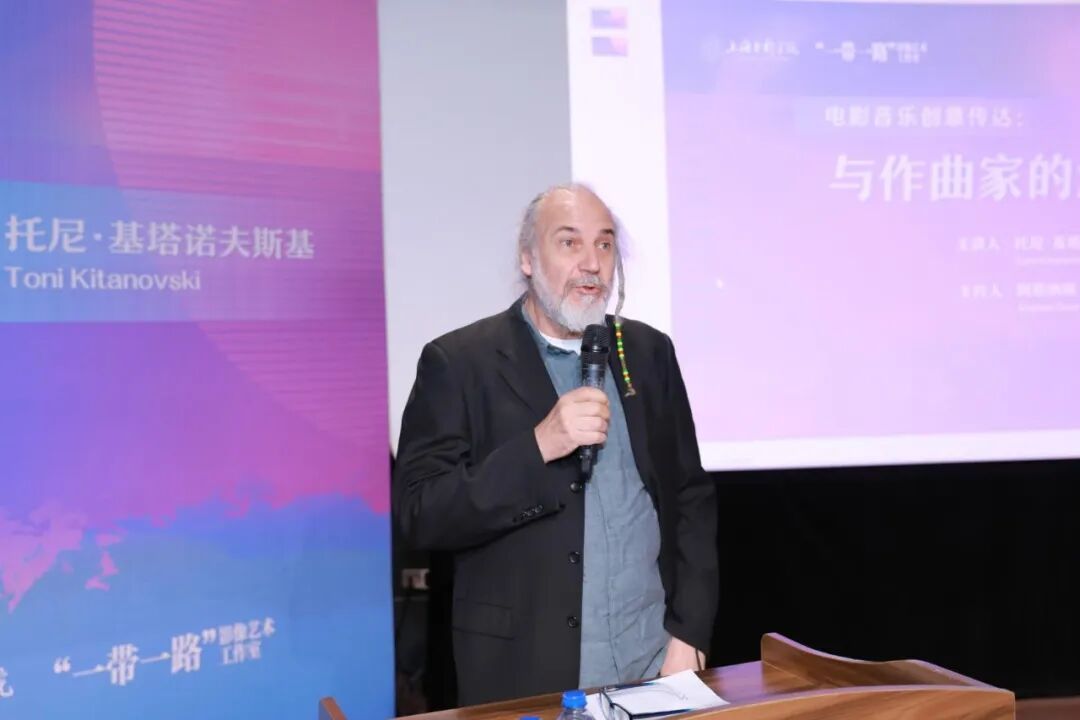 12月16日上午,上海大学上海电影学院特邀享誉国际的北马其顿作曲家、吉他演奏家和音乐教育家托尼·基塔诺夫斯基教授(Toni Kitanowski)举办大师班,主题为“电影音乐创意传达:与作曲家的沟通艺术”。托尼教授在戈采·德尔切夫大学音乐学院等多所艺术院校任教,并在电影配乐、爵士、世界音乐和古典创作领域取得了卓著的成就,曾为40余部影视作品创作配乐,荣获“查尔斯·明格斯奖”等多项国际荣誉,其艺术和教育影响力遍及全球。