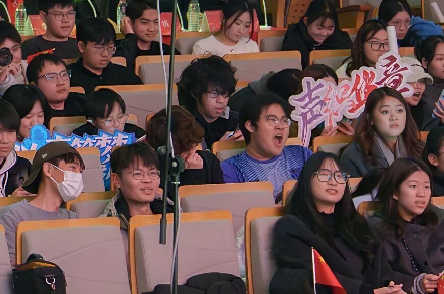台下观众手持应援牌热情应援,与台上的歌声汇成一片红色的声浪,成为赛场最动人的和声。