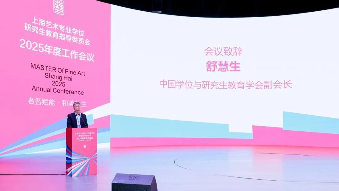 中国学位与研究生教育学会副会长舒慧生在致辞中对会议的召开表示祝贺,并向长期奋战在艺术研究生教育一线的教育工作者致以敬意。他指出,艺术专业学位教育在文化强国建设中具有不可替代的重要作用,高度肯定了上海艺指委成立11年来取得的显著成效和形成的特色经验。希望上海艺指委在“十五五”期间持续深化改革,为教育强国、文化强国建设作出更大贡献。