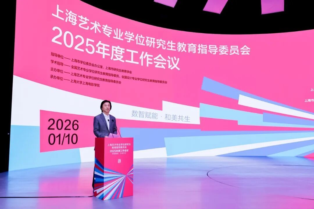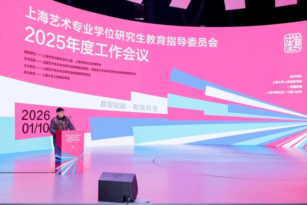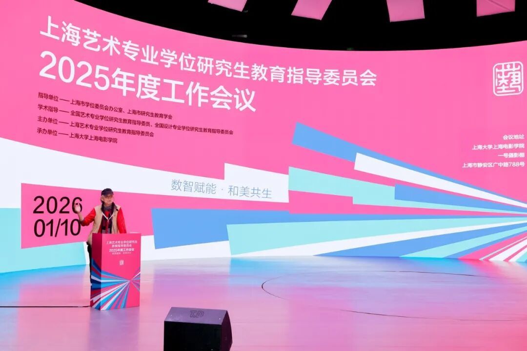 2026年1月10日,上海艺术专业学位研究生教育指导委员会(以下简称“上海艺指委”)年度工作会议在上海大学举行。会议由上海大学电影学院承办,主会场设在上海大学上海电影学院一号摄影棚(上海静安区广中路788号)。