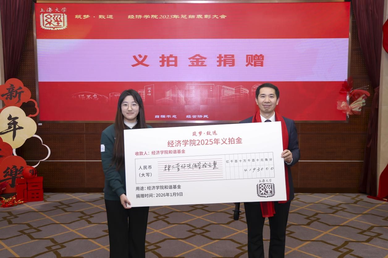 2026年1月9日下午,“筑梦·致远”上海大学经济学院2025年度总结表彰大会在宝山校区乐乎新楼2号楼思源厅举行。东方证券客群发展总部总经理助理邢海亮,东方证券上海分公司副总经理赵军,在学校其他部门任职的学院教师陆甦颖、陈秋玲,文荟书院院长、经济学院原院长沈瑶,经济学院战略管理委员会主任聂永有,上海市统计学会副会长、经济学院校外导师陈新光,新疆生产建设兵团美协原秘书长、泮池书院美育导师潘先纲,与经济学院领导班子、师生代表欢聚一堂,共忆耕耘岁月,共绘发展蓝图。本次大会立足学校“双一流”建设新阶段,紧扣“十五五”规划开局部署,既是对过去一年学院在学科建设、人才培养与教学科研的系统复盘,更是凝聚经院力量、迈向高质量发展新征程致远之旅的再出发。