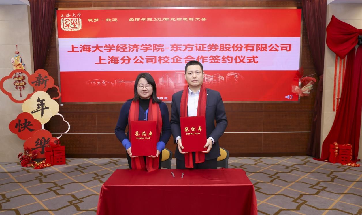 其后,上海大学经济学院党委副书记、执行院长殷凤与东方证券股份有限公司上海分公司副总经理赵军代表双方签订校企合作协议。双方将进一步深化产教融合,为学生搭建更广阔的实习就业平台,标志着双方协同育人合作迈入高质量发展新阶段。