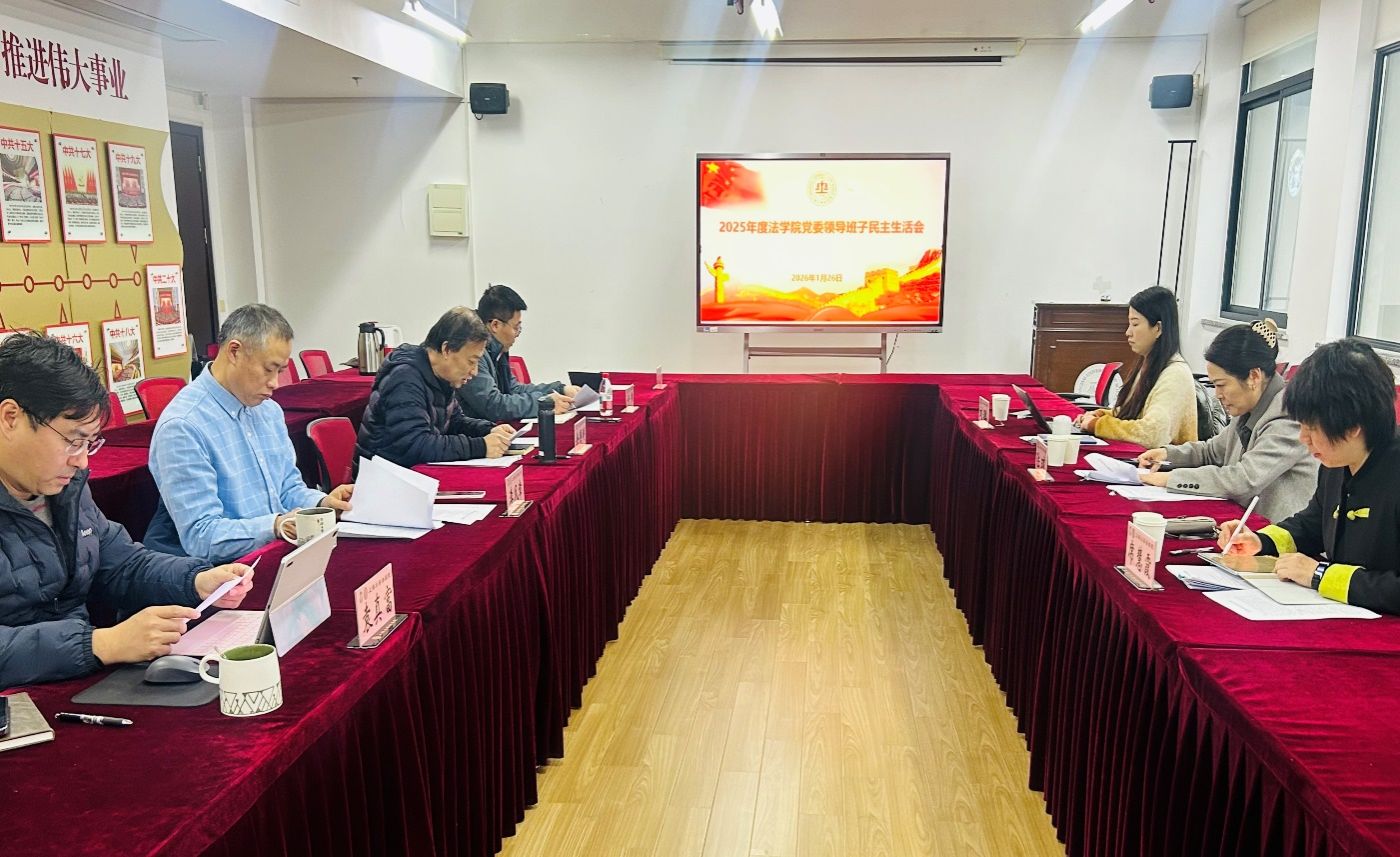 按照学校党委工作要求,1月26日上午,上海大学法学院党委领导班子在法学楼504会议室召开2025年度民主生活会。会议主题是:深入学习贯彻习近平新时代中国特色社会主义思想,全面贯彻落实党的二十届四中全会精神,以打攻坚战、持久战的决心和恒心,锲而不舍落实中央八项规定精神,推进作风建设常态化长效化,以优良作风凝心聚力、真抓实干,奋力开创中国式现代化建设新局面。校党委第7督导组组长陆瑾作点评讲话,督导组副组长席慧霞、联络员刘璐到会指导。学院领导班子全体党员干部参加会议。会议由学院党委书记徐国明主持。