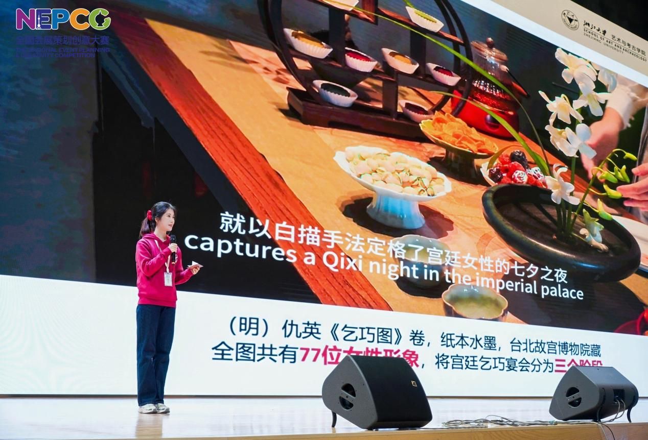 在一等奖路演现场,浙江大学《画里七夕》团队表示:“我们希望通过创意策划,打破文化隔阂,让更多不同文化背景的人了解传统节庆文化的独特魅力,推动中华节庆文化在国际舞台上绽放光彩。”上海大学《泡泡疗愈计划》团队表示,“团队通过创新设计和策划,打造出具有独特吸引力的文旅会展项目,为青年世代游客带来全新体验,推动武夷山文旅会展产业高质量发展”。杭州科技职业技术学院路演团队表示,“我们将融合武义当地‘萤石温泉’、丹霞地貌、古村落等稀缺资源,引入AI智能健康监测等手段,打造‘数智+人文’的高端康养静修项目,满足更多年轻客群的休闲康养需求。”西北大学《解密岁朝佳兆图》、浙江工业大学《上元灯彩映团圆》、宁夏大学《林水寨“稻梦空间”双轨智慧丰收节》、中国计量大学《开化根宫佛国×西游记IP联名设计》等获奖作品相继登场,展现出青年学子扎根本土、面向未来、放眼全球的创新活力。