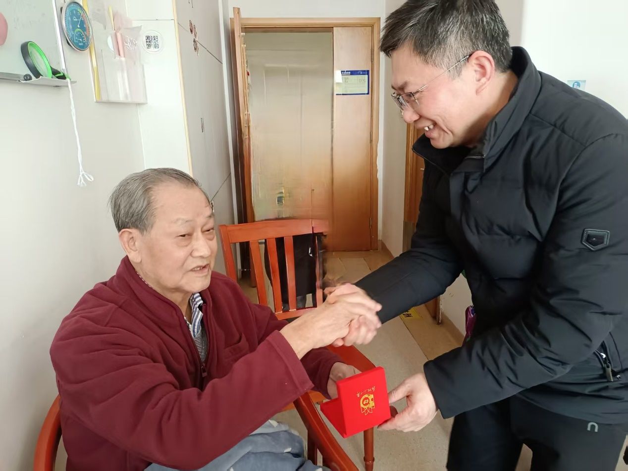 主委们详细了解受访社员的健康和家庭状况,并介绍了社组织的工作情况。慰问团送上礼品与春联,向社龄三十年的陈佩玲、徐钟、葛玉林、魏季和颁发“在社三十年”纪念章,鼓励他们树立信心、克服困难、战胜疾病,祝愿他们保重身体、新春快乐、马年吉祥!受访社员真诚欢迎慰问团到来,衷心感谢社组织的关心与慰问,表示要健康生活,树立信心,继续为社组织贡献力量,也祝愿九三上大委在新的一年不断进步,再创佳绩。