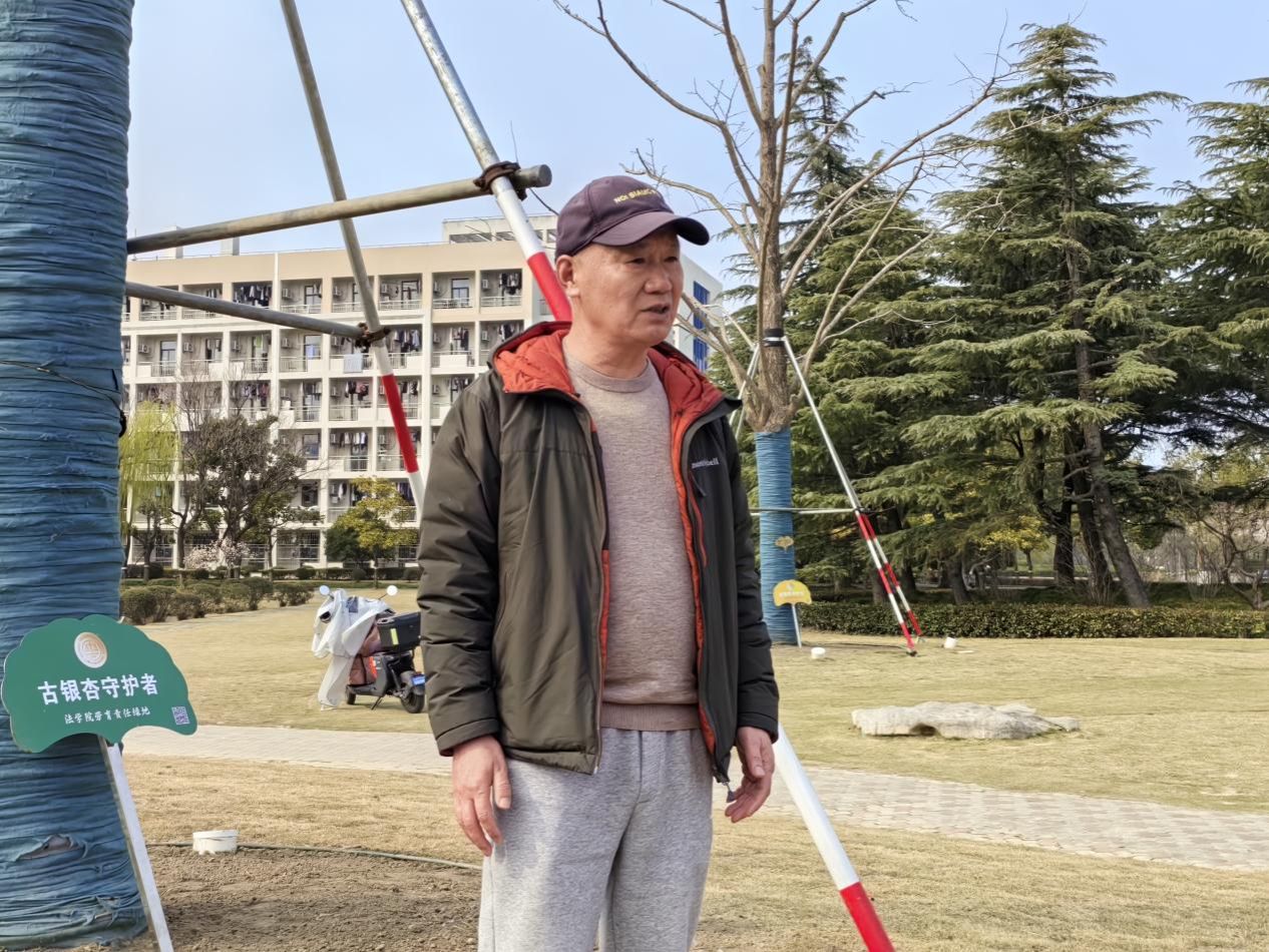 后勤保障部物业管理中心主任褚凤灵在致辞中简要介绍了2025年两棵古银杏树的捐赠过程,表示希望同学们通过养护树木感悟生命成长,在劳动中培养责任担当。随后,马伟明老师向现场师生介绍了上海大学宝山校区绿植的总体情况,并现场讲解银杏养护要点,从浇水频率到病虫害防治,将专业知识化为生动的劳动课堂。听完讲解后,师生们一同将“古银杏守护者”标识牌植入土地。同学们挥锹培土,协作中体会劳动的意义,将劳动教育从课堂延伸至自然。