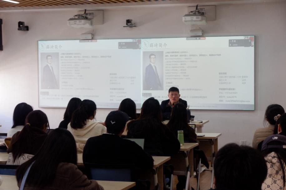 开班仪式结束后,“专利漫谈”讲座在法学院404室举行,由上海弼兴律师事务所主任合伙人薛琦主讲。薛琦以“三看专利法”为主线,从宏观、中观、微观角度解析专利实务精髓,结合自身代理数千件案件的丰富经验,用生动案例阐释了技术方案、技术问题与技术效果的辩证关系,并鼓励学员跳出技术看法律,培养专利思维。讲座现场互动热烈,为第四期课程拉开了精彩序幕。