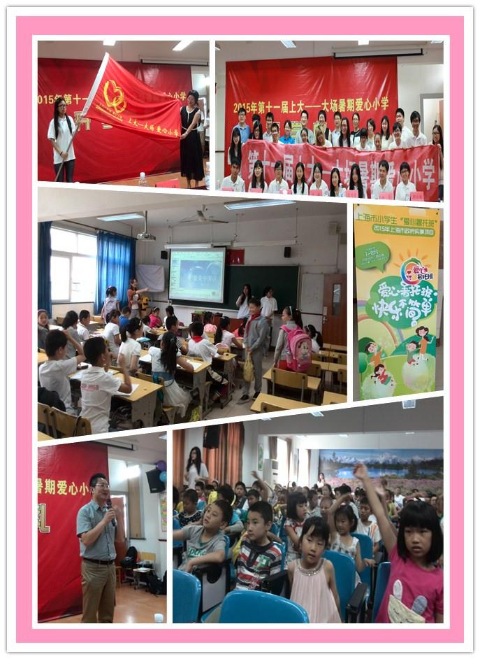上海市小学生“爱心暑托班”作为上海市政府的实事项目,经过了2014年的尝试后,反响热烈,得到了社会各界的广泛好评。本次“爱心暑托班”由我校外国语学院与大场镇政府共同组织筹办,该项目对于推动区校合作、区域化团建方面做出了有益的尝试。“爱心暑托班”在延续了爱心小学办班的传统后,也办出了自己的特色,赢得了良好的口碑。