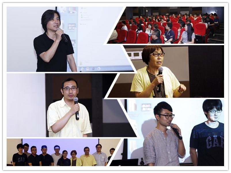 上海大学影视学院常务副院长何小青,上影集团国家一级导演朱峰,上影集团国家一级导演武珍年,影视艺术系支部书记陈晓达、主任程波,以及7位MFA学生导演出席了活动。