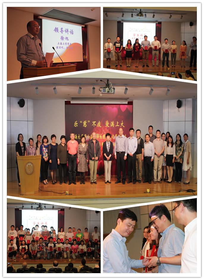 5月26日下午,“上海大学第六届慈善文化节闭幕式暨学生社区2014-2015学年精神文明建设表彰会”在行政楼报告厅隆重举行,上海市慈善基金会副理事长、区县联络与义工委员会主任吴明、上海慈善基金会宝山分会会长张培正、校党委副书记、副校长徐旭等近300名师生参加此次活动。