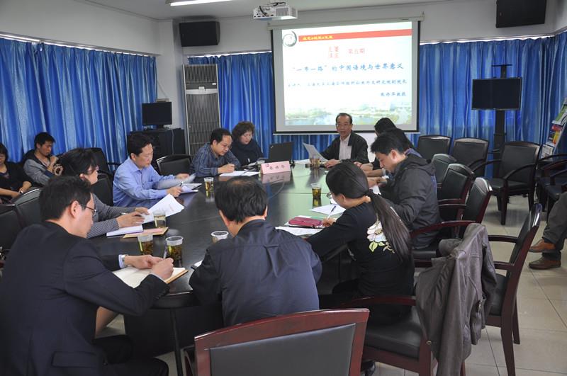 4月28日上午,以“启思、凝聚、发展”为宗旨的大众课堂——“直属讲堂”第五期在校本部D楼直属单位教工之家顺利开讲。此次讲堂以《“一带一路”的中国语境和世界意义》为主题,同时作为直属单位党委2015年第1次中心组学习的内容。讲座由直属单位党委书记陈志宏主持,来自学校各单位的教职工及部分研究生一起参加了讲座。