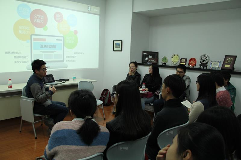 应上海大学影视学院广告系邀请,2015年4月17日下午3点,来自北京腾信创新网络营销技术股份有限公司几位导师来到上海大学,为2013级广告系的学生们进行了一场导师制培训。