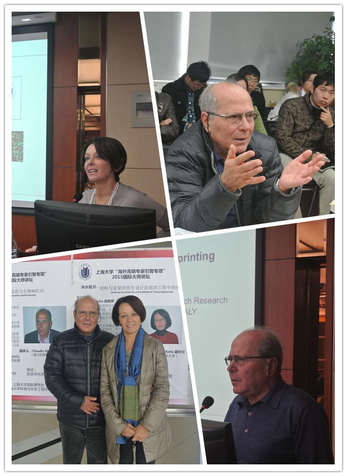 2015年3月13日下午,在校国际事务处的支持下,环化学院特邀意大利Trento大学的Claudio Migliaresi教授和Antonella Motta教授等访问了上海大学并举行了一次大师讲坛活动。