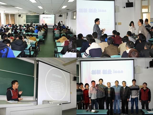 大会邀请了ICAN组委会副主席、基金会主席杨剑波先生、物理系党总支副书记朱绮彪老师及美新杯指导教师姜健生老师。杨总亲切地为大家做了“ICAN项目孵化,精准就业创业”演讲,演讲幽默诙谐而不失严肃认真,他还走下台去与同学们近距离互动,极大地调动了同学们的热情。