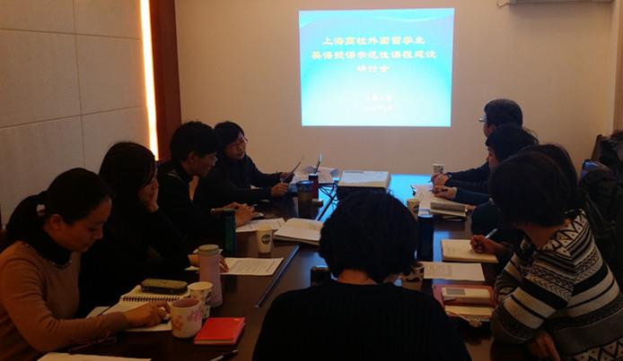 1月7日下午,国际交流学院在宝山校区V楼会议室召开上海高校外国留学生英语授课示范性课程建设研讨会。会议由国际交流学院副院长曾桂娥主持,我校示范性课程负责人及课程团队成员出席了会议。
